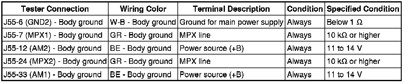(b) If the result is not as specified, there may be a malfunction on the wire harness side.