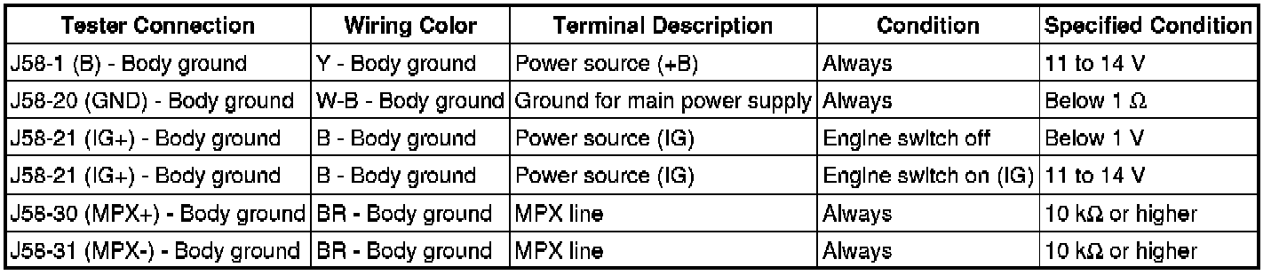 5. CHECK MULTIPLEX NETWORK MASTER SWITCH