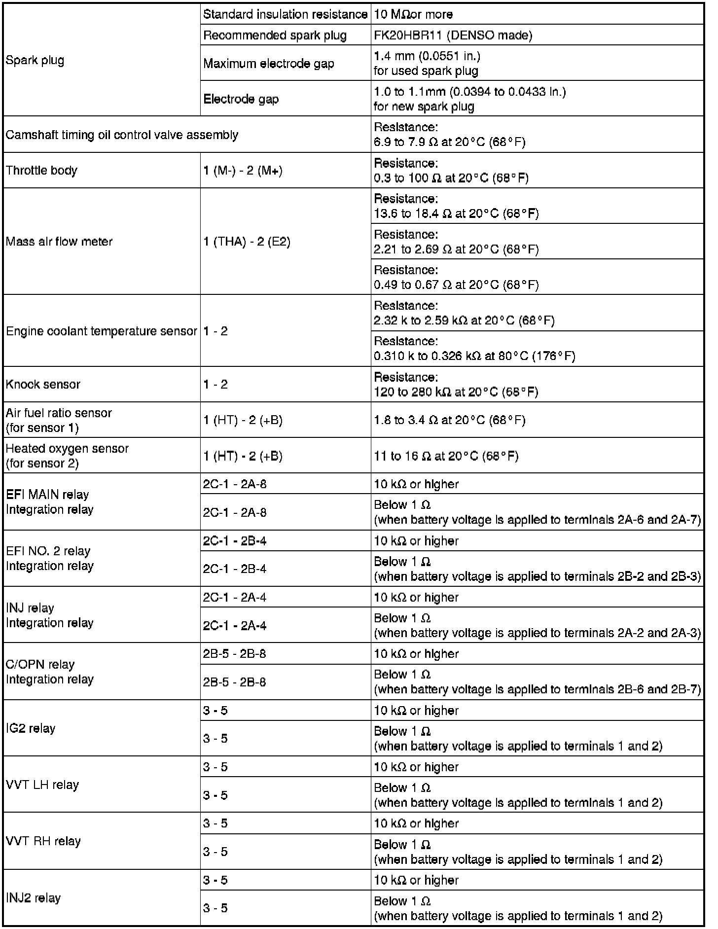 SPECIFICATIONS: 2UR-GSE ENGINE CONTROL: SERVICE DATA