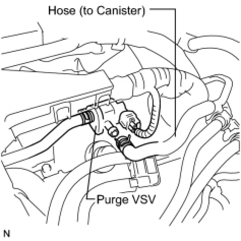 (c) Disconnect the hose (connected to the canister) from the purge VSV.
