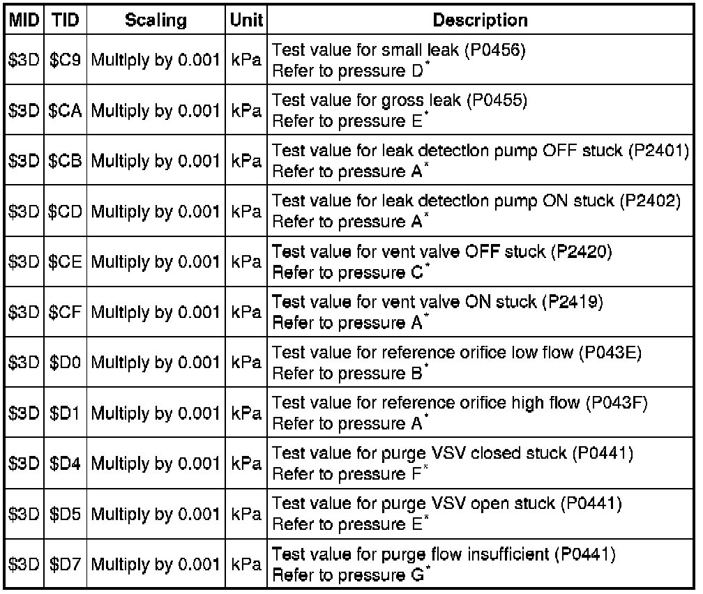 * Scaling is used to calculate the test value indicated on generic OBD II scan tools.