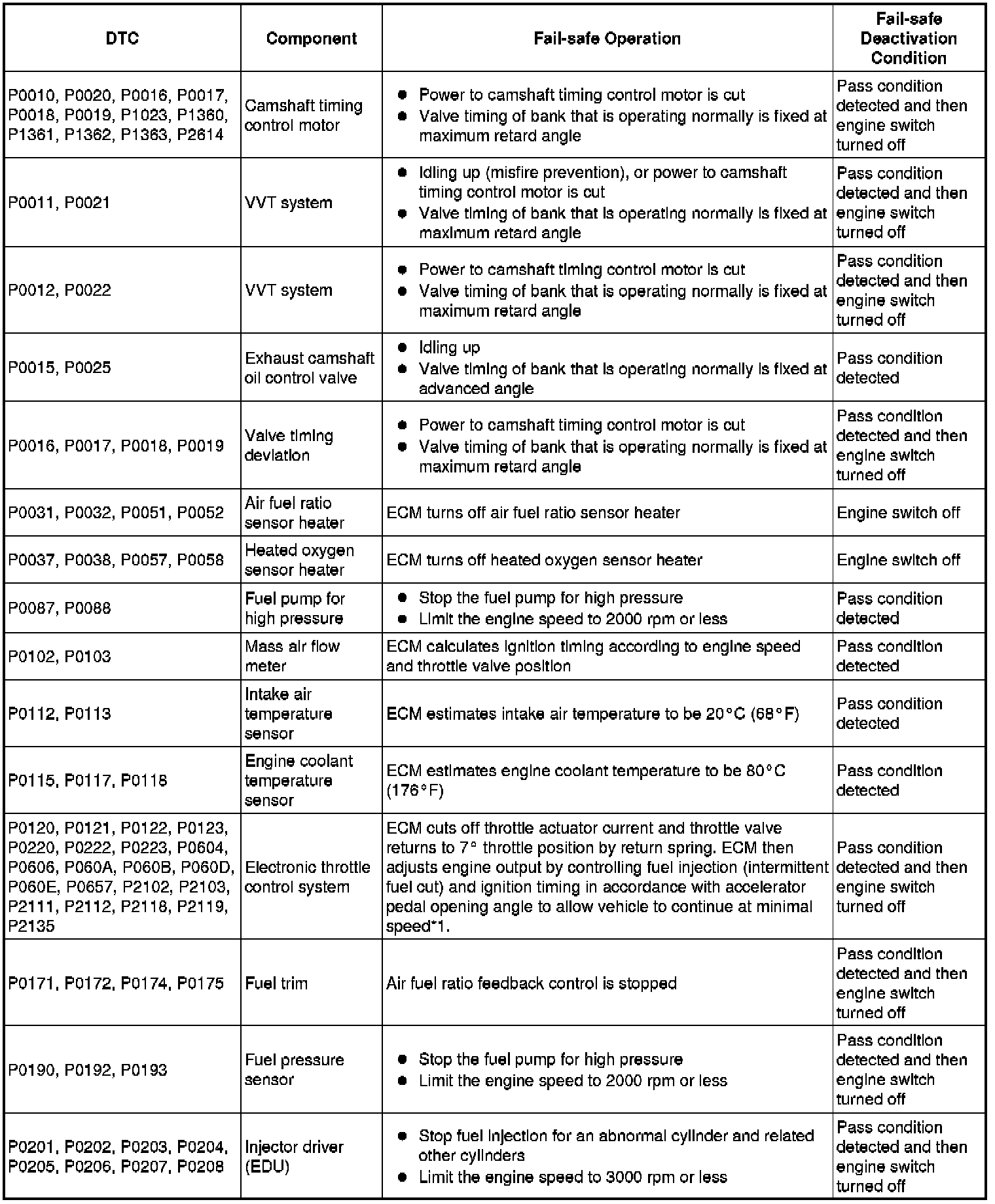 If any of the following DTCs are set, the ECM enters fail-safe mode to allow the vehicle to be driven temporarily.