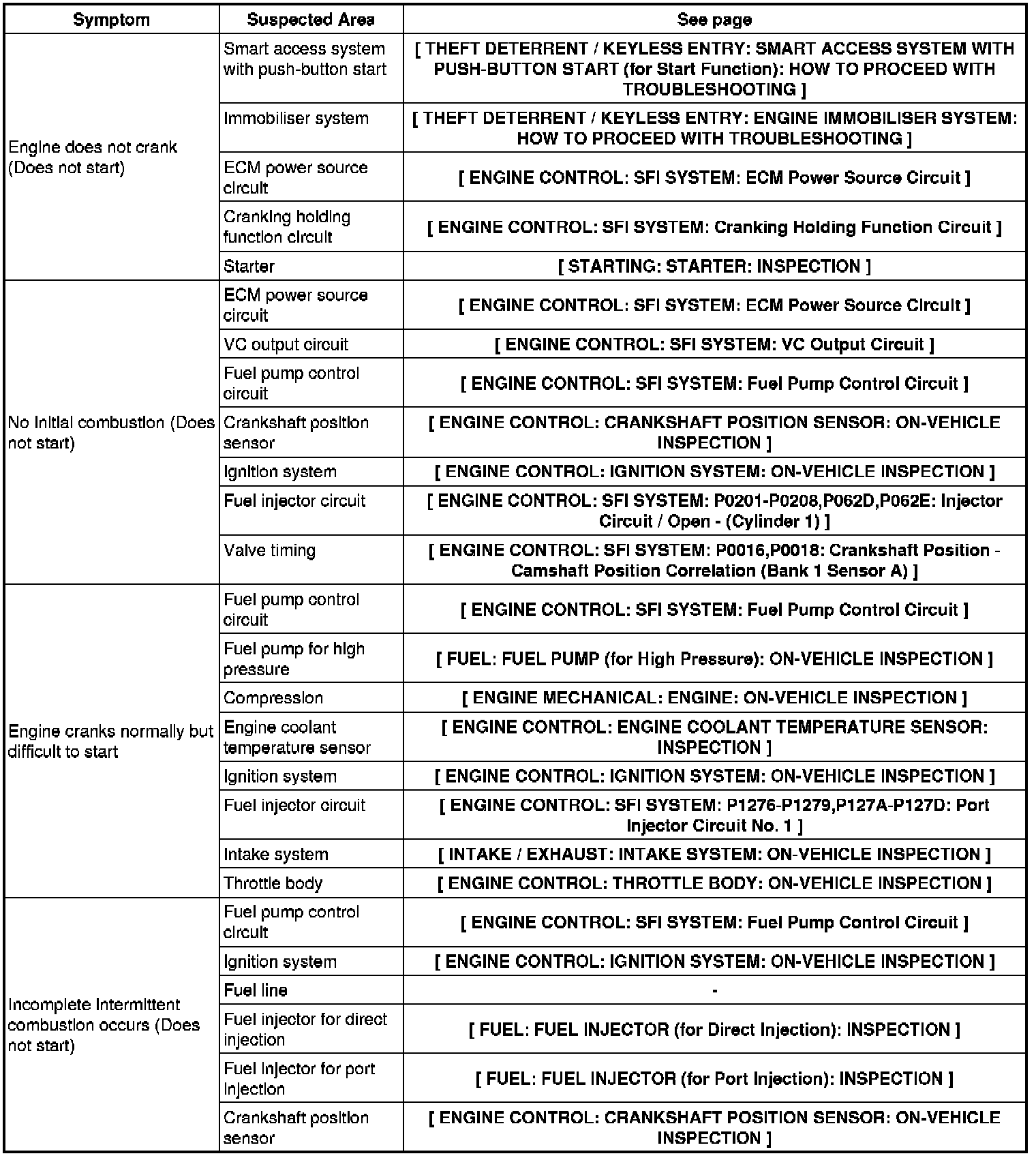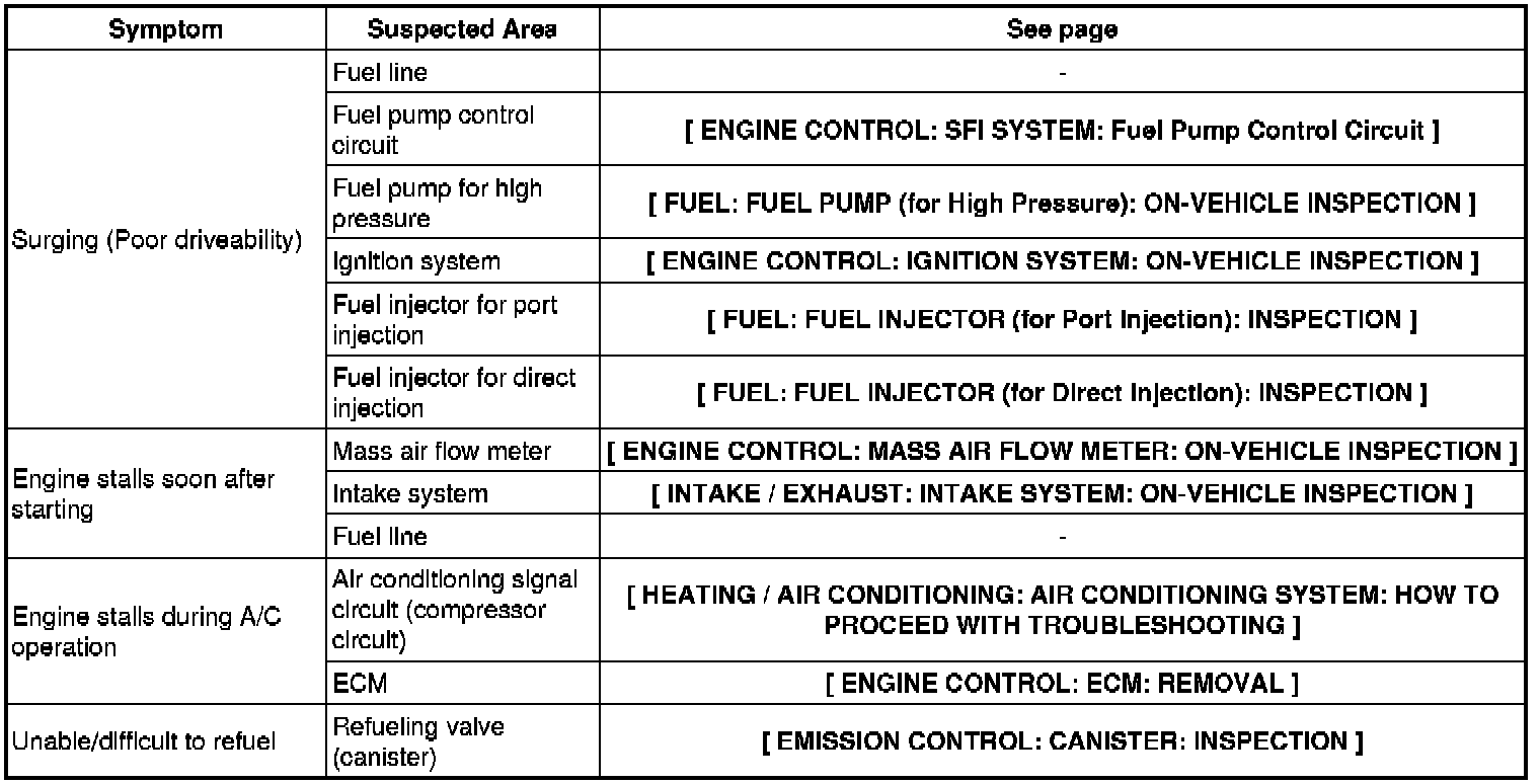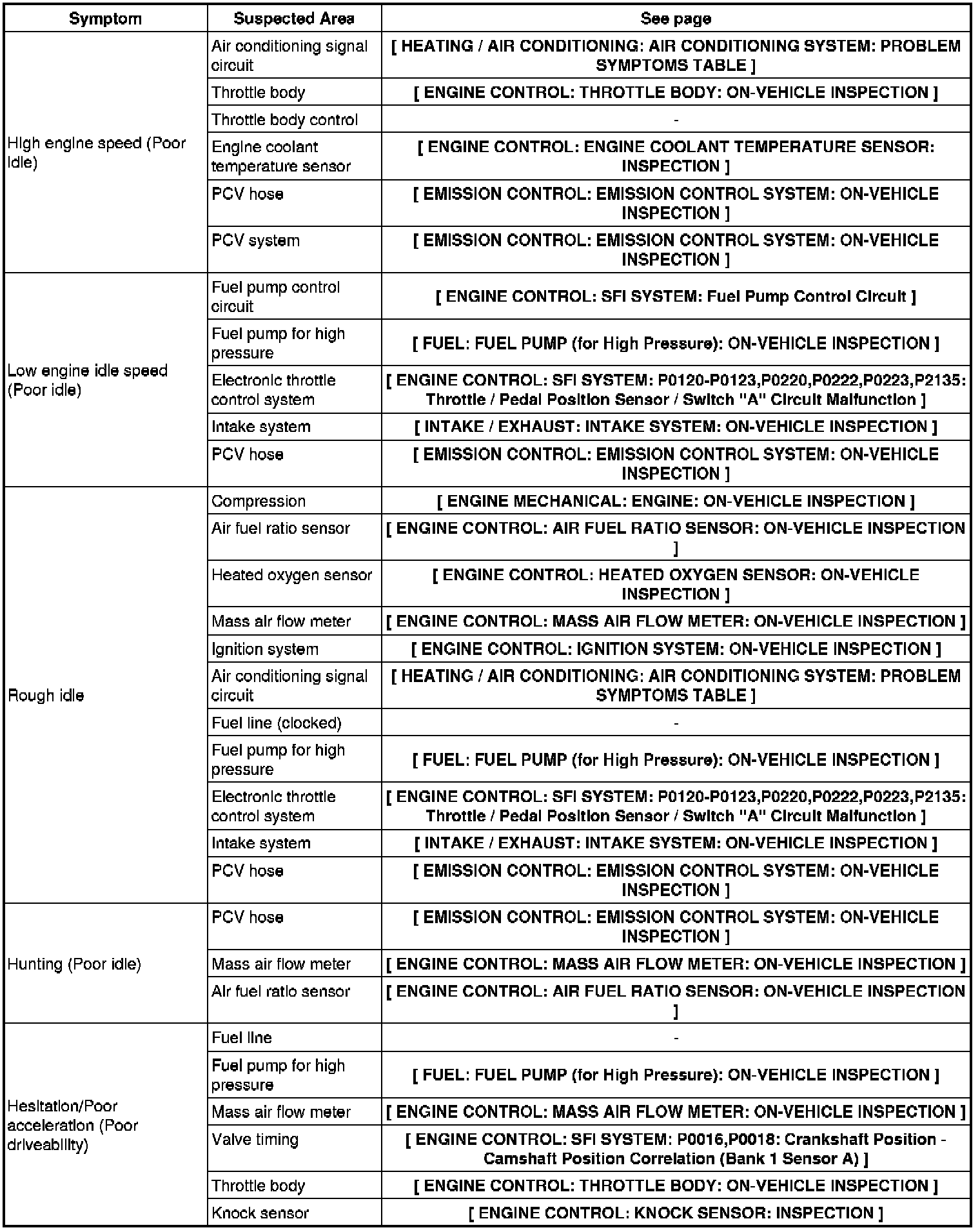 2UR-GSE ENGINE CONTROL: SFI SYSTEM: PROBLEM SYMPTOMS TABLE
