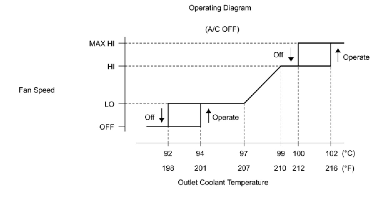 (i) After the engine is warmed up, check that the fans operate as shown in the illustration below.