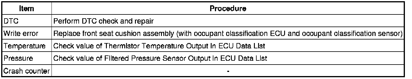* If After Exchange is selected before the previous ECU data are stored in the Techstream, the display screen returns to CONDITION SELECT ECU: Occupant Detect.