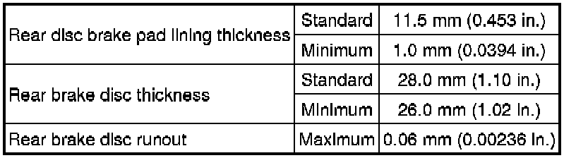 SPECIFICATIONS: BRAKE (REAR): SERVICE DATA