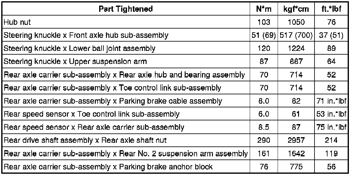 SPECIFICATIONS: AXLE AND DIFFERENTIAL: TORQUE SPECIFICATIONS