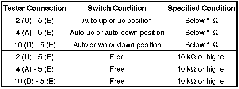 (1) If the result is not as specified, replace the rear power window regulator switch assembly (for rear LH side).