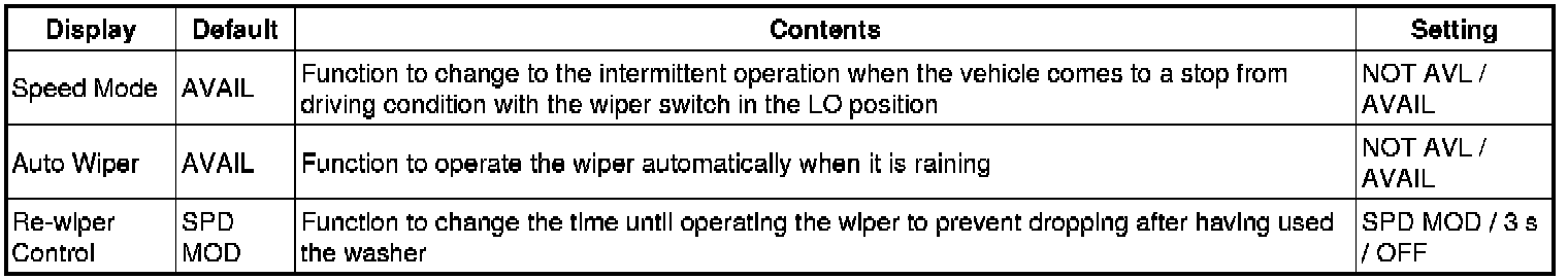 WIPER / WASHER: WIPER AND WASHER SYSTEM: CUSTOMIZE PARAMETERS