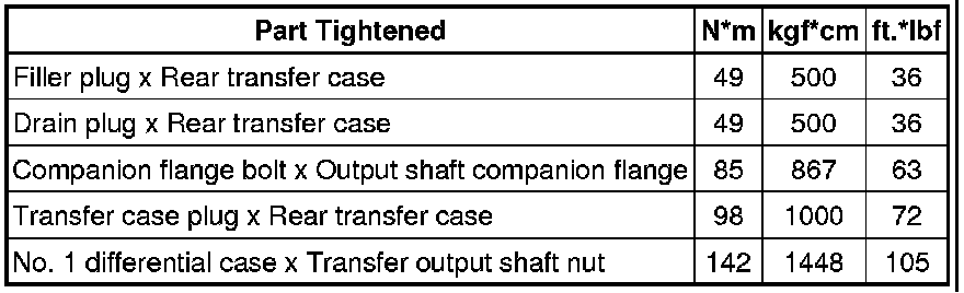SERVICE SPECIFICATIONS: LF1A TRANSFER: TORQUE SPECIFICATIONS