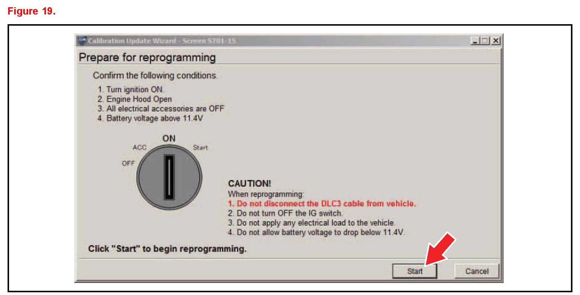 K. Turn ignition to the ON position. Then click Start.