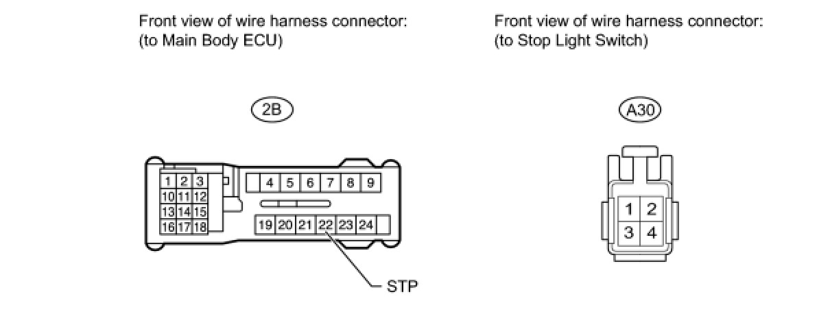 21. CHECK HARNESS AND CONNECTOR (STOP LIGHT SWITCH - MAIN BODY ECU AND BATTERY)
