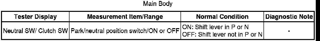 ON (shift lever in P or N) and OFF (shift lever not in P or N) are displayed on the Techstream.