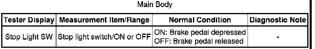 ON (brake pedal is depressed) and OFF (brake pedal is released) are displayed on the Techstream.
