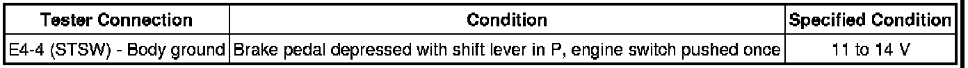 (1) When there is fuel in the fuel tank, the key is inside the vehicle and the shift lever is in P, check that depressing the brake pedal and pressing the engine switch cranks the engine.