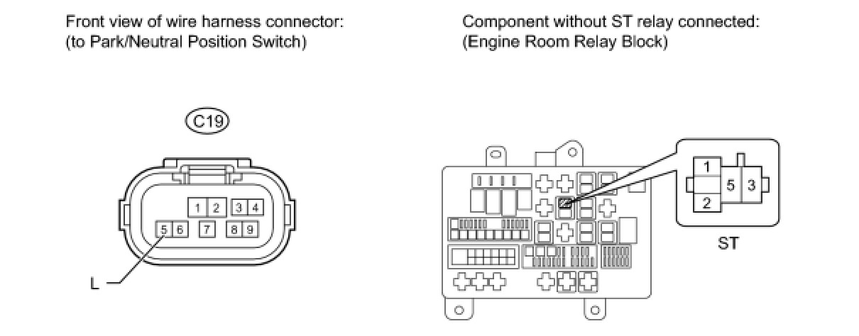 18. CHECK HARNESS AND CONNECTOR (STARTER RELAY - PARK/NEUTRAL POSITION SWITCH AND BODY GROUND)