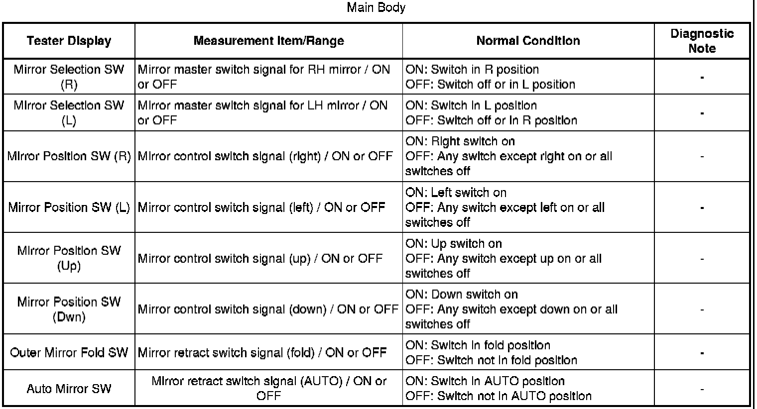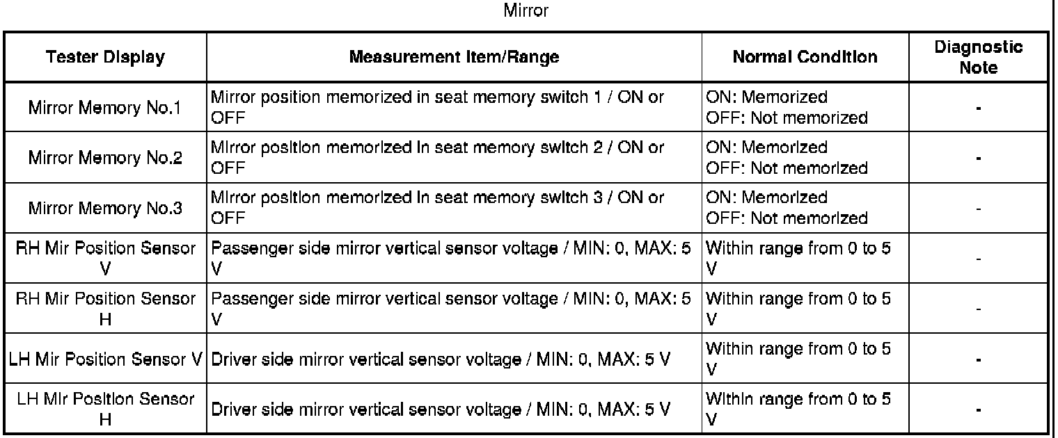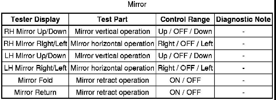 MIRROR (EXT): POWER MIRROR CONTROL SYSTEM: DATA LIST / ACTIVE TEST
