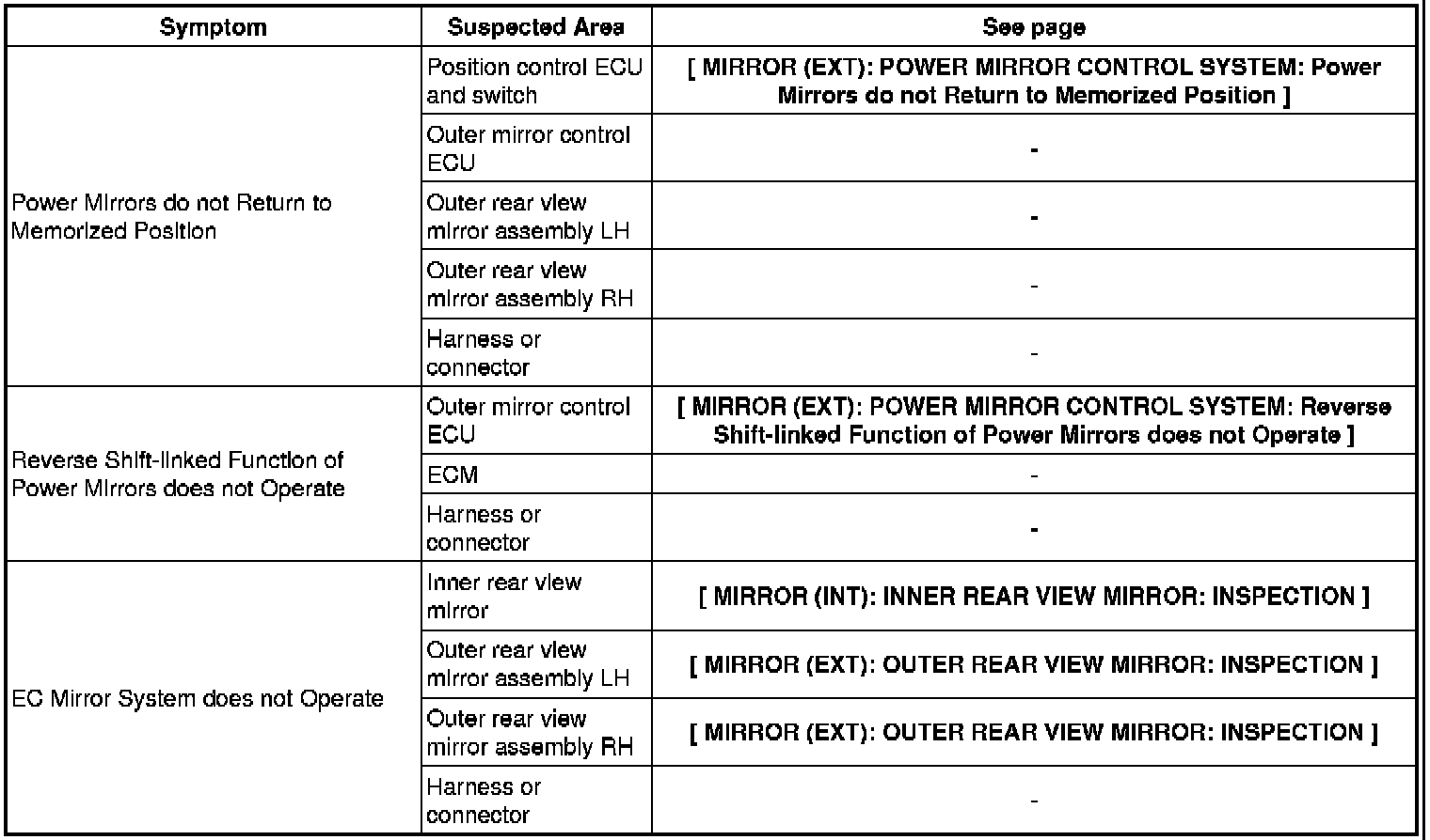 MIRROR (EXT): POWER MIRROR CONTROL SYSTEM: PROBLEM SYMPTOMS TABLE