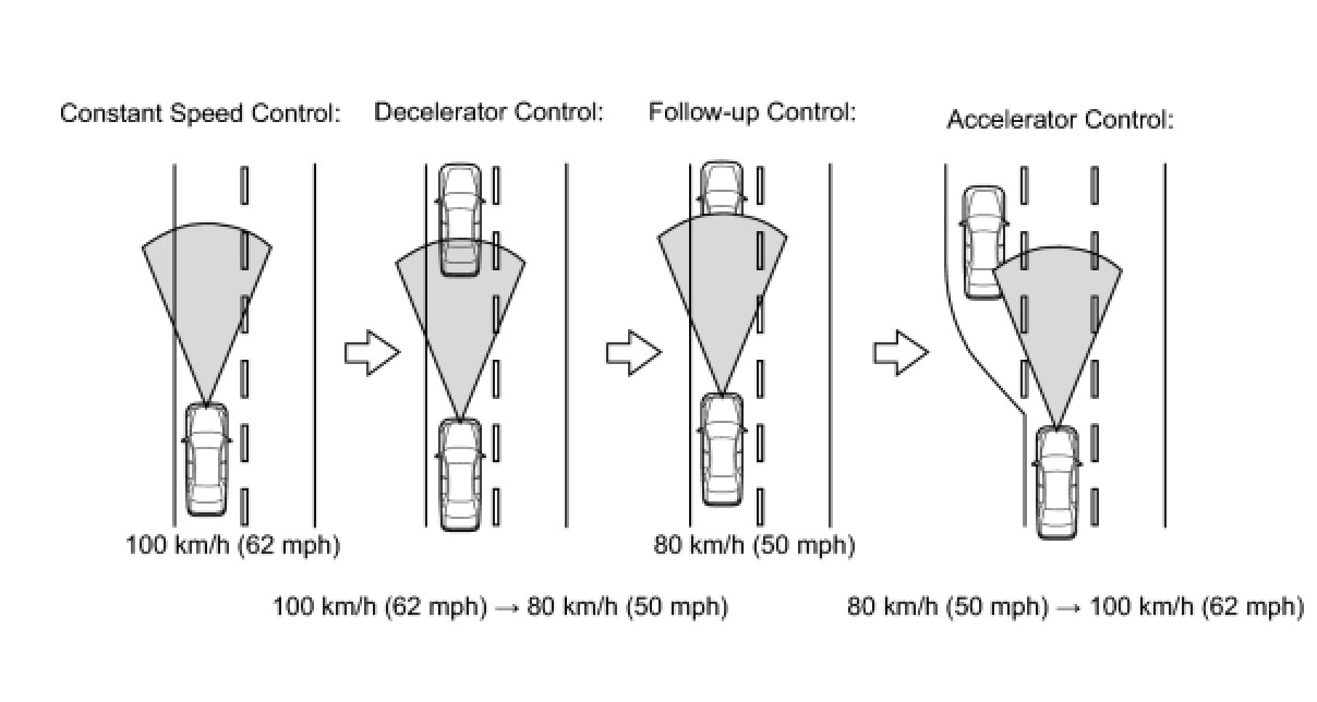 (a) The dynamic radar cruise control system has 2 cruise control modes: the constant speed control mode and vehicle-to-vehicle distance control mode.