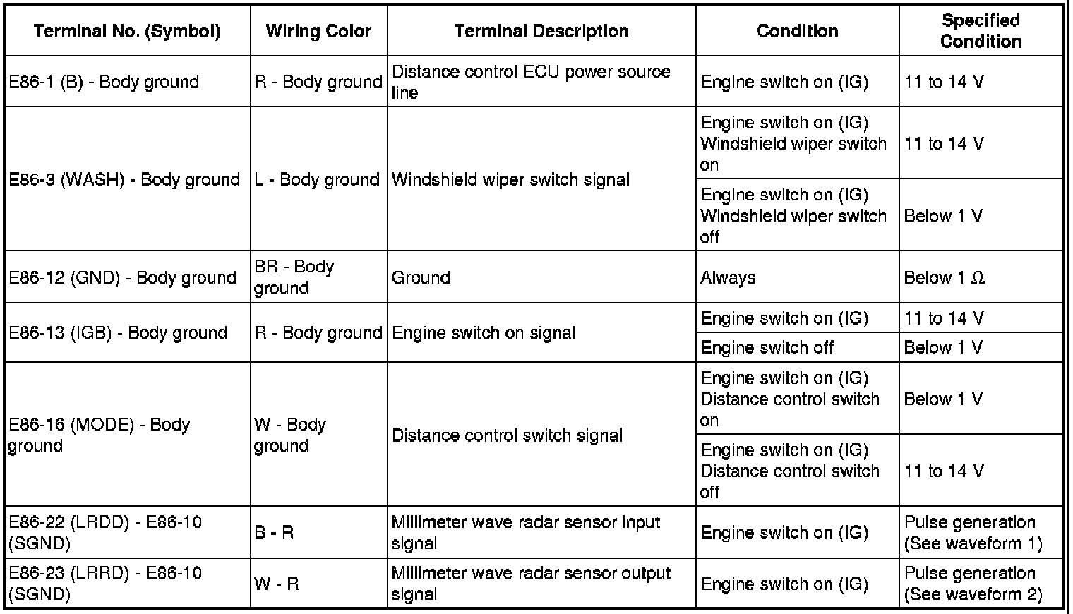 CRUISE CONTROL: DYNAMIC RADAR CRUISE CONTROL SYSTEM: TERMINALS OF ECU