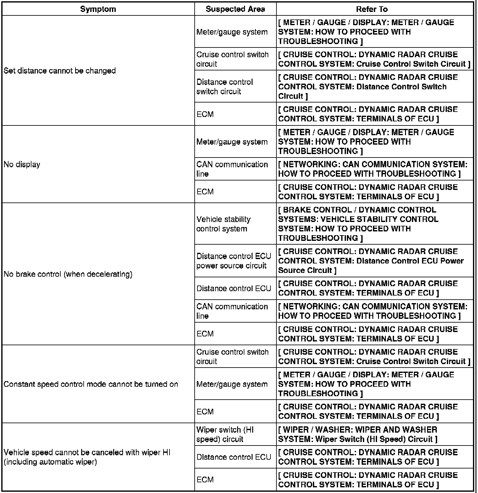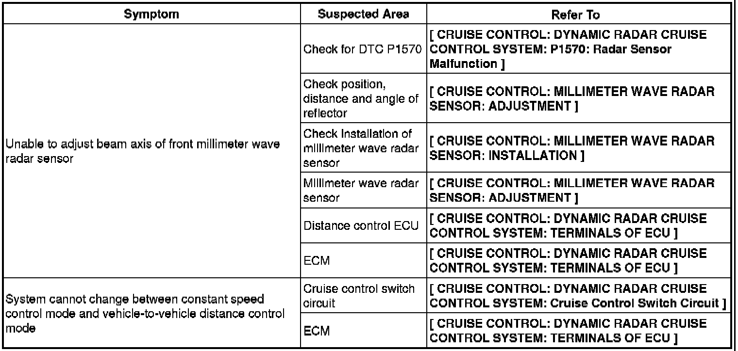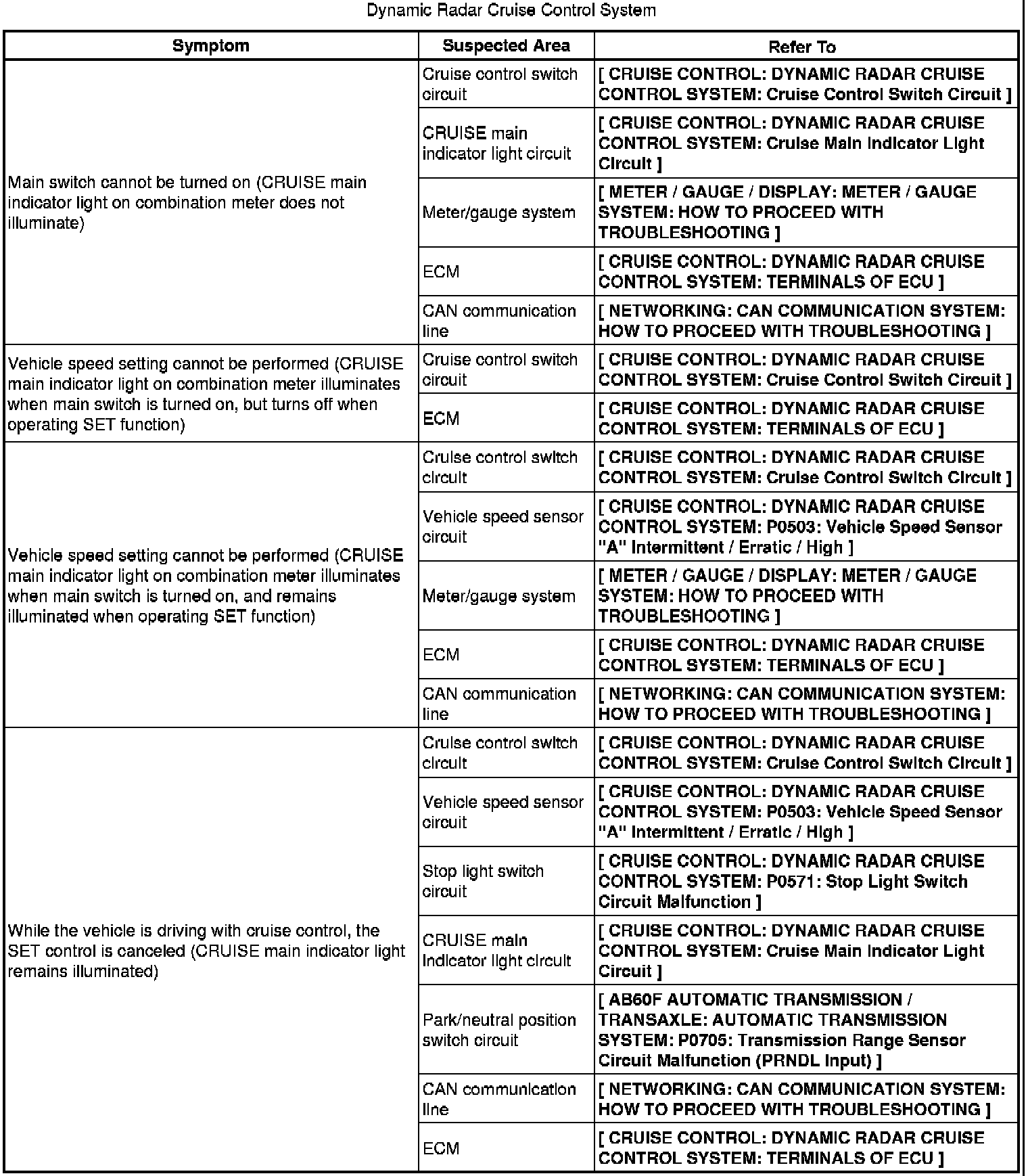 CRUISE CONTROL: DYNAMIC RADAR CRUISE CONTROL SYSTEM: PROBLEM SYMPTOMS TABLE