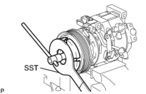 (d) Using a snap ring expander, remove the snap ring and the magnet clutch rotor.