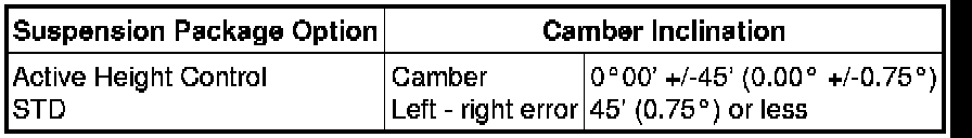 Standard Camber Inclination (Unloaded):