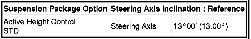 Standard Steering Axis Inclination (Unloaded Vehicle):