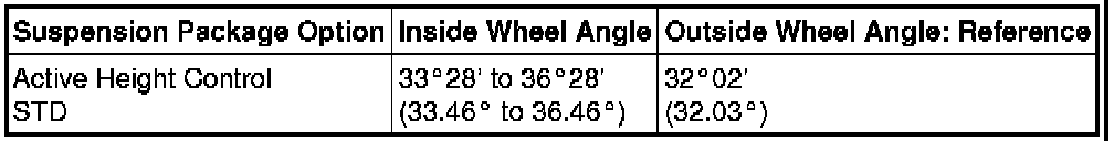 Standard Wheel Turning Angle (Unloaded Vehicle):