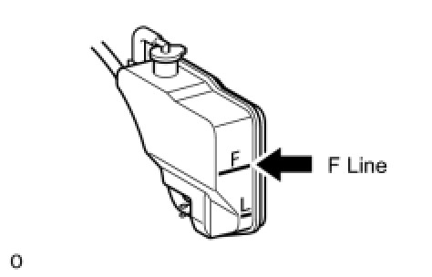 * Immediately after starting the engine, if the radiator reservoir does not have any coolant, perform the following: 1) stop the engine, 2) wait until the coolant has cooled down, and 3) add coolant until the coolant is filled to the F line.