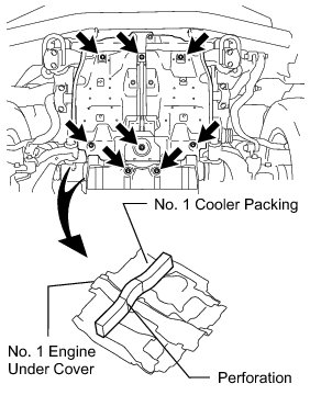 If the No. 1 cooler packing is not divided, remove both sides of the engine under cover assembly and cut the packing at the perforation indicated in the illustration.