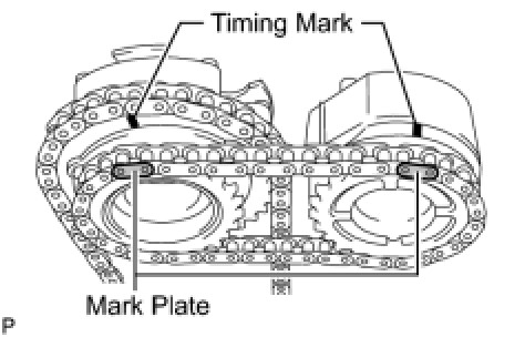 (a) Align the No. 1 chain orange mark plate with the camshaft timing gear timing mark, and attach the chain to the gear as shown in the illustration.