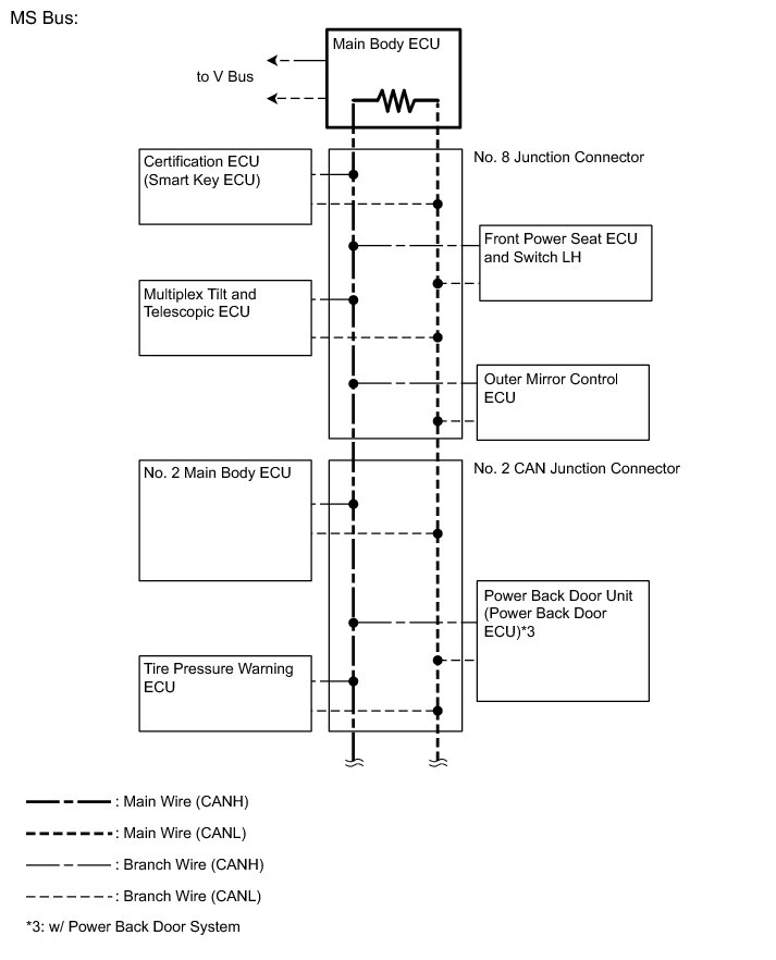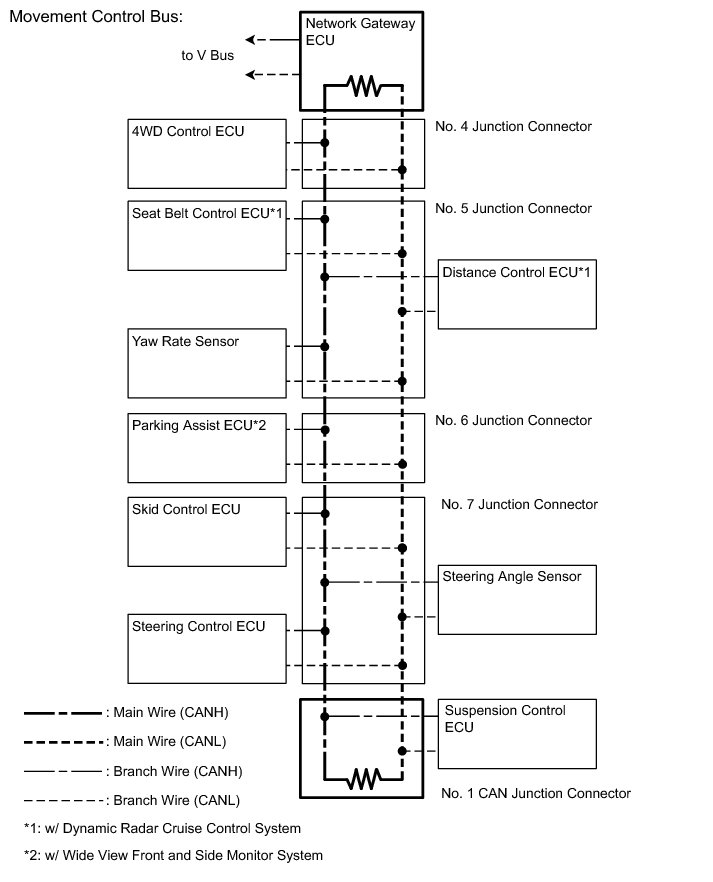 (1) The main wire is a wire harness between the 2 termination circuits on the bus (communication line). This is the main bus in the CAN communication system.