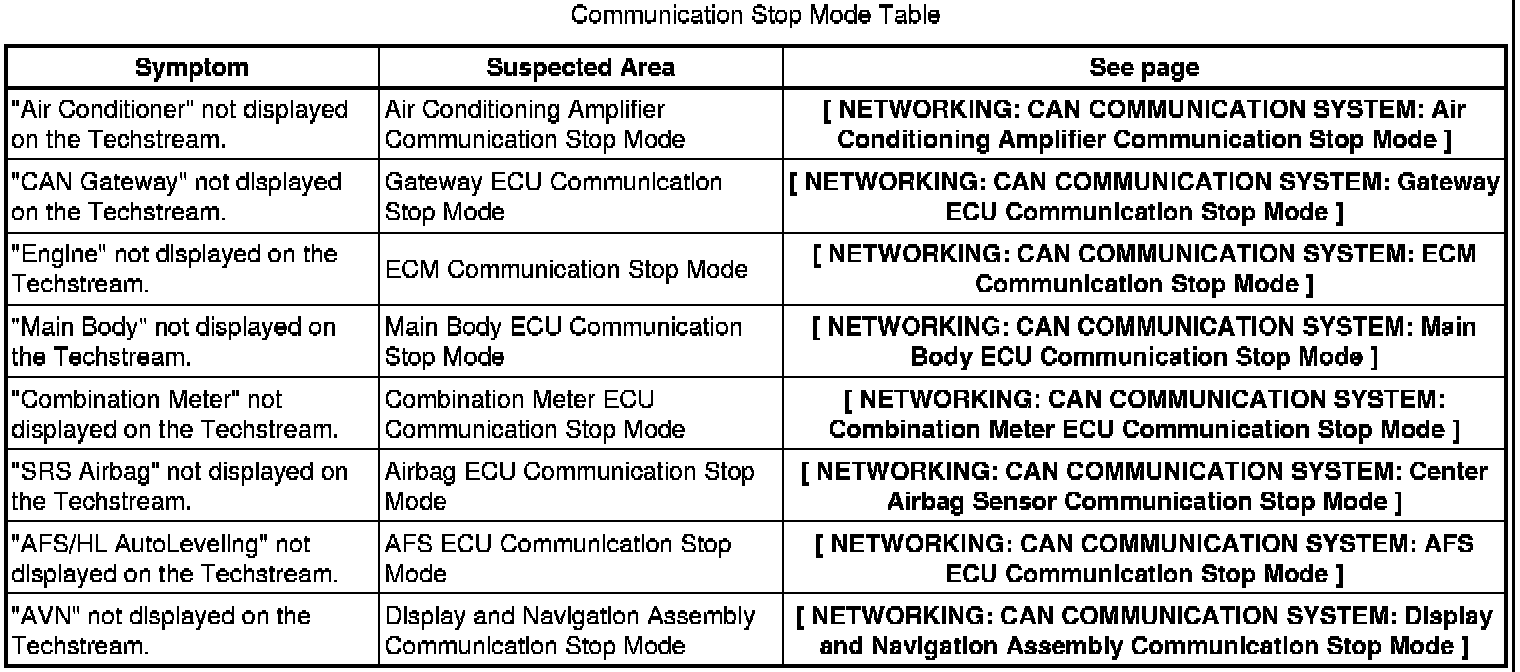 NETWORKING: CAN COMMUNICATION SYSTEM: PROBLEM SYMPTOMS TABLE