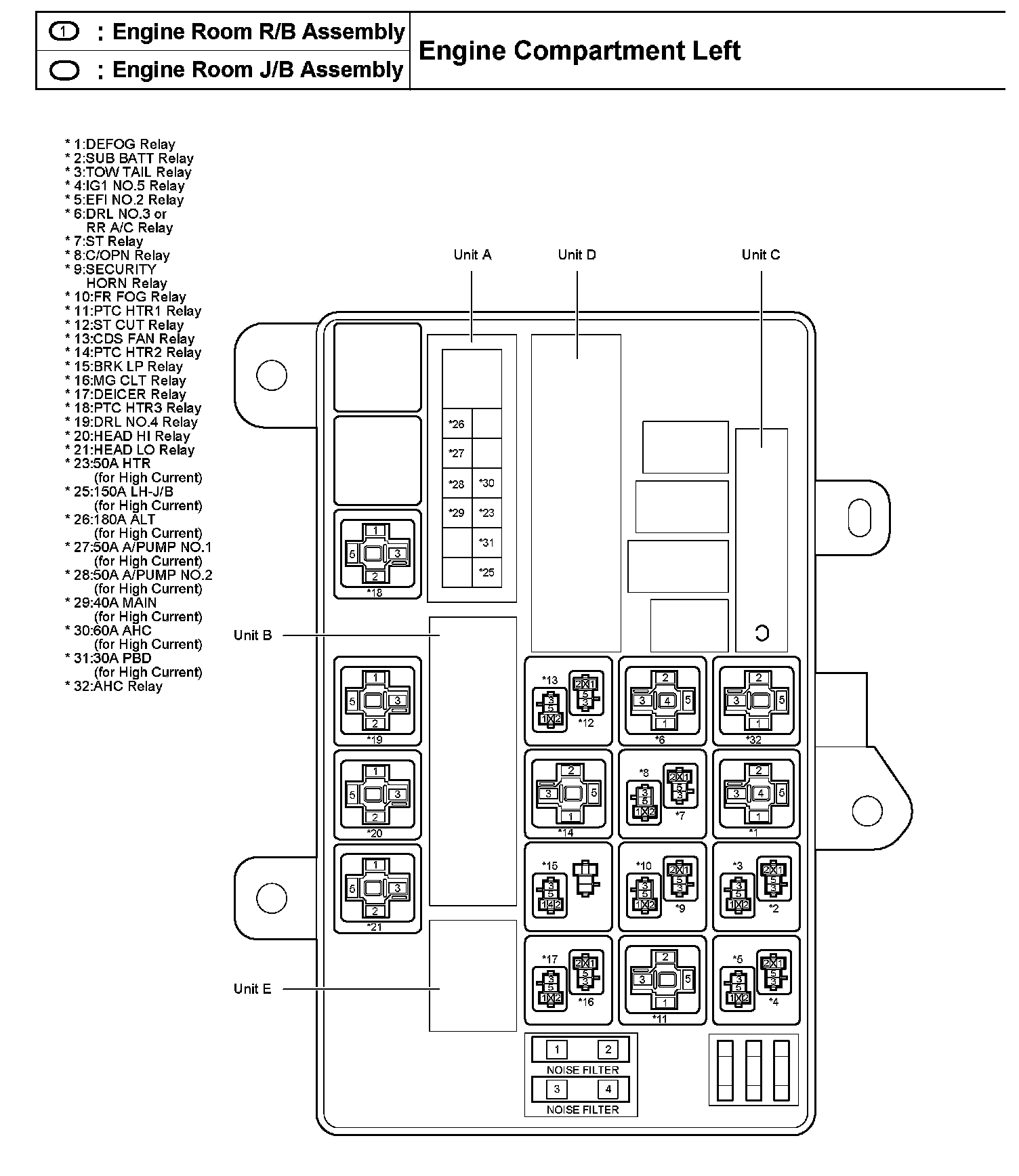 Engine Room R/B, J/B Assembly - Engine Compartment Left: