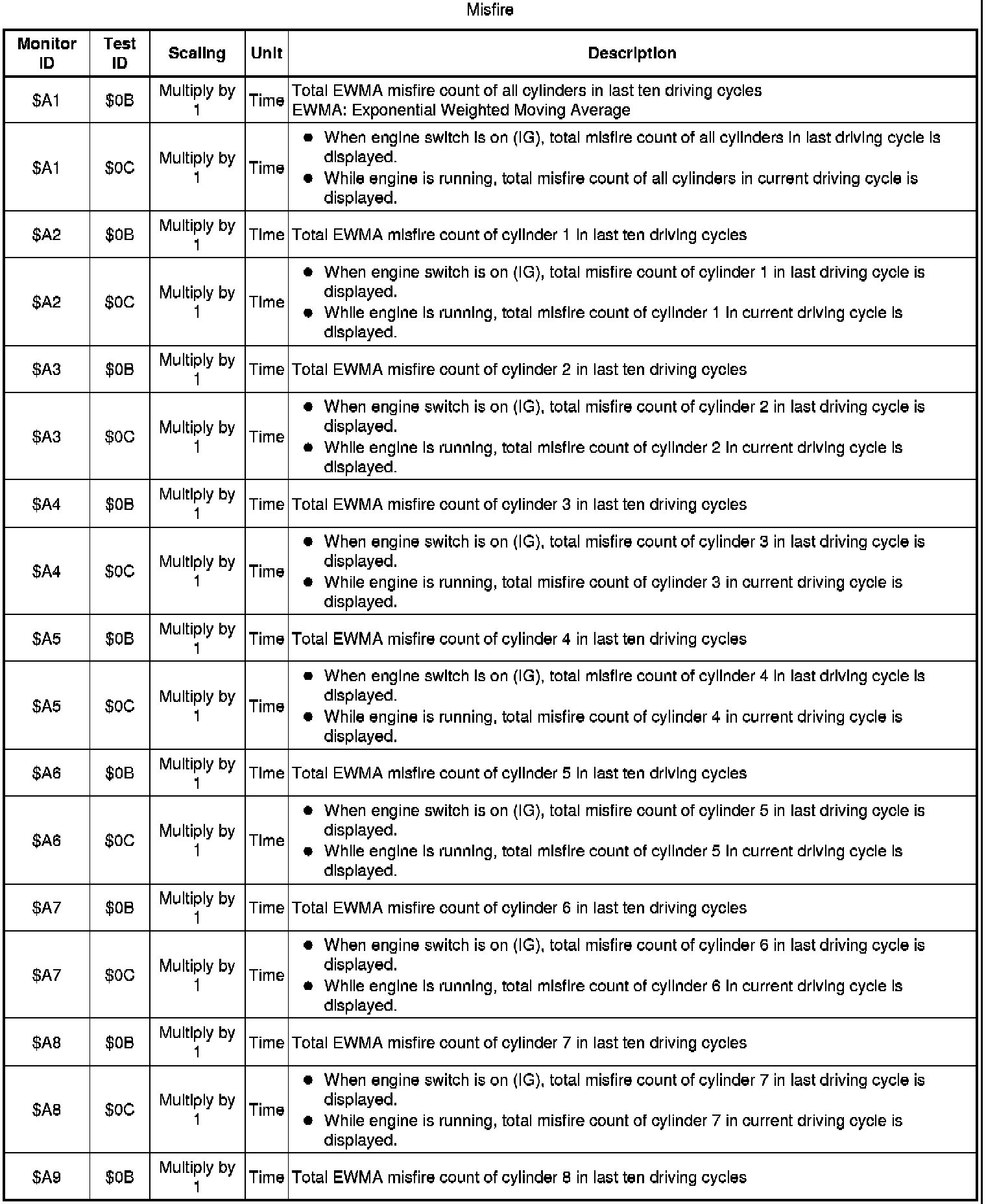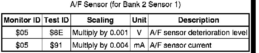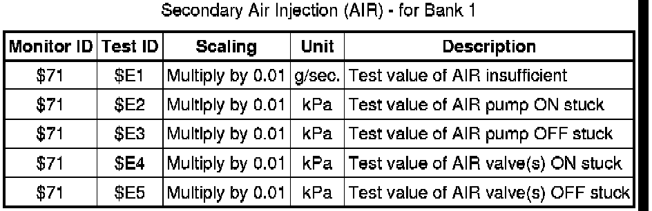 If you use a generic scan tool, multiply the test value by the scaling value listed below.
