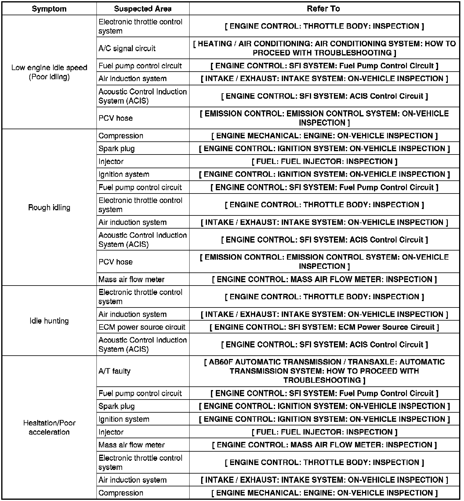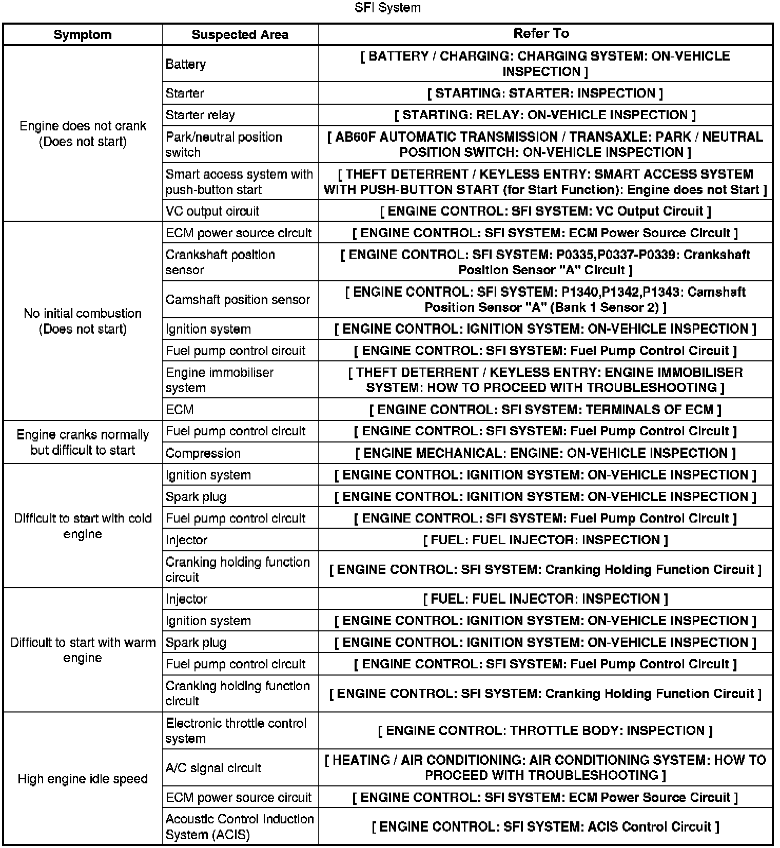 3UR-FE ENGINE CONTROL: SFI SYSTEM: PROBLEM SYMPTOMS TABLE