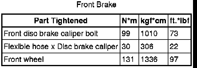 SPECIFICATIONS: BRAKE (FRONT): TORQUE SPECIFICATIONS