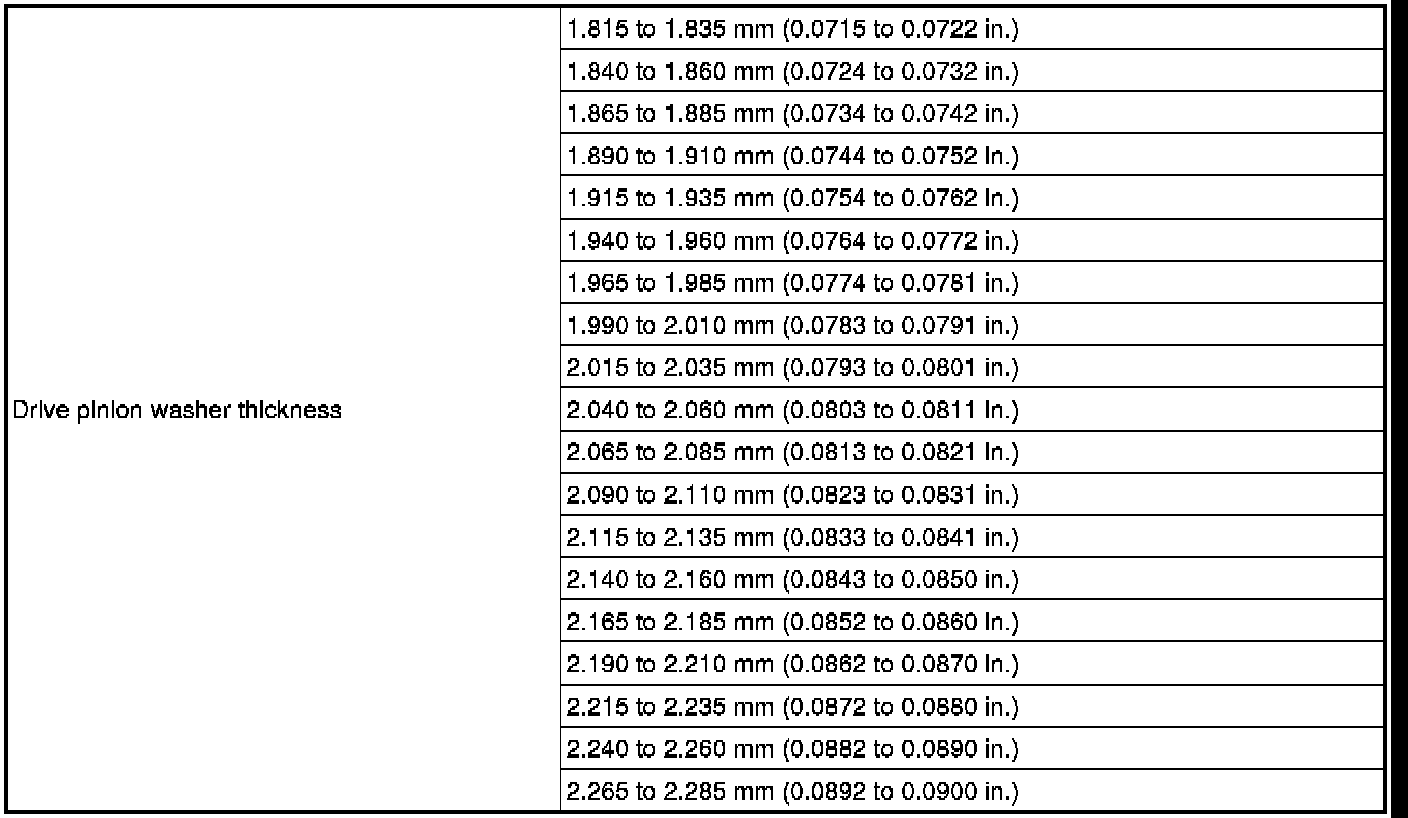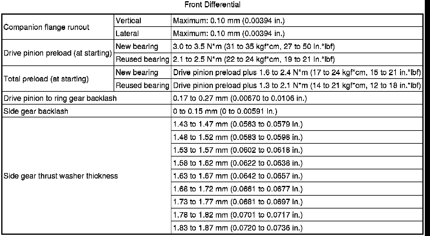 SPECIFICATIONS: AXLE AND DIFFERENTIAL: SERVICE DATA