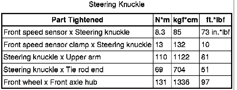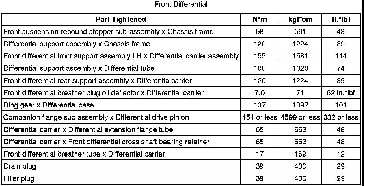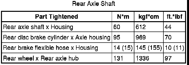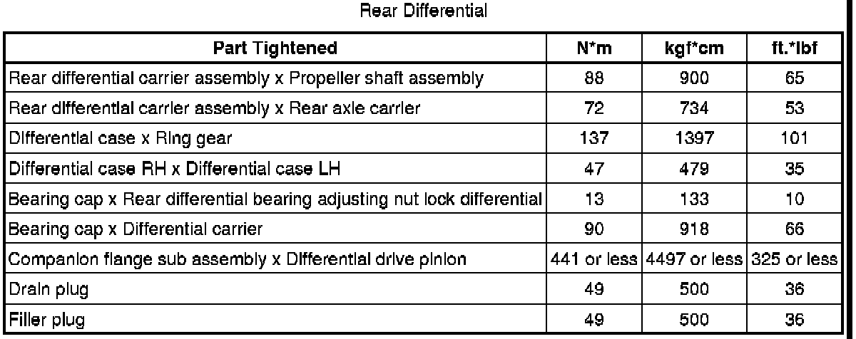 SPECIFICATIONS: AXLE AND DIFFERENTIAL: TORQUE SPECIFICATIONS