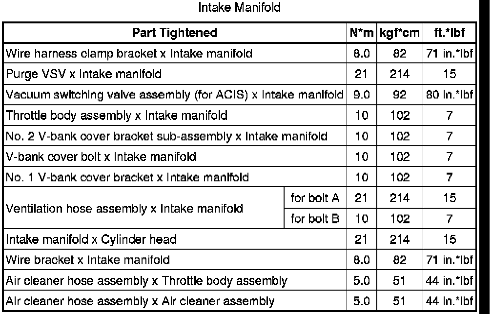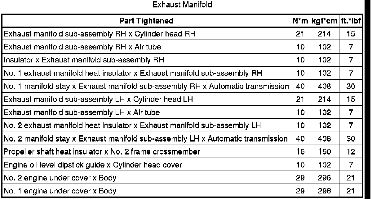 SPECIFICATIONS: 3UR-FE INTAKE / EXHAUST: TORQUE SPECIFICATIONS
