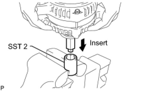 (d) Insert SST 1-A and B into SST 2, and attach the pulley nut to SST 2.