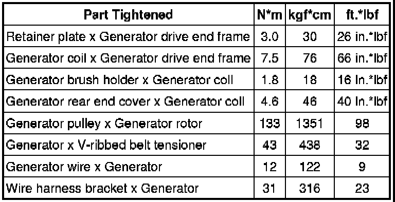 SPECIFICATIONS: 3UR-FE BATTERY / CHARGING: TORQUE SPECIFICATIONS