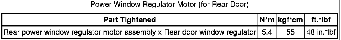 SPECIFICATIONS: WINDOW / GLASS: TORQUE SPECIFICATIONS