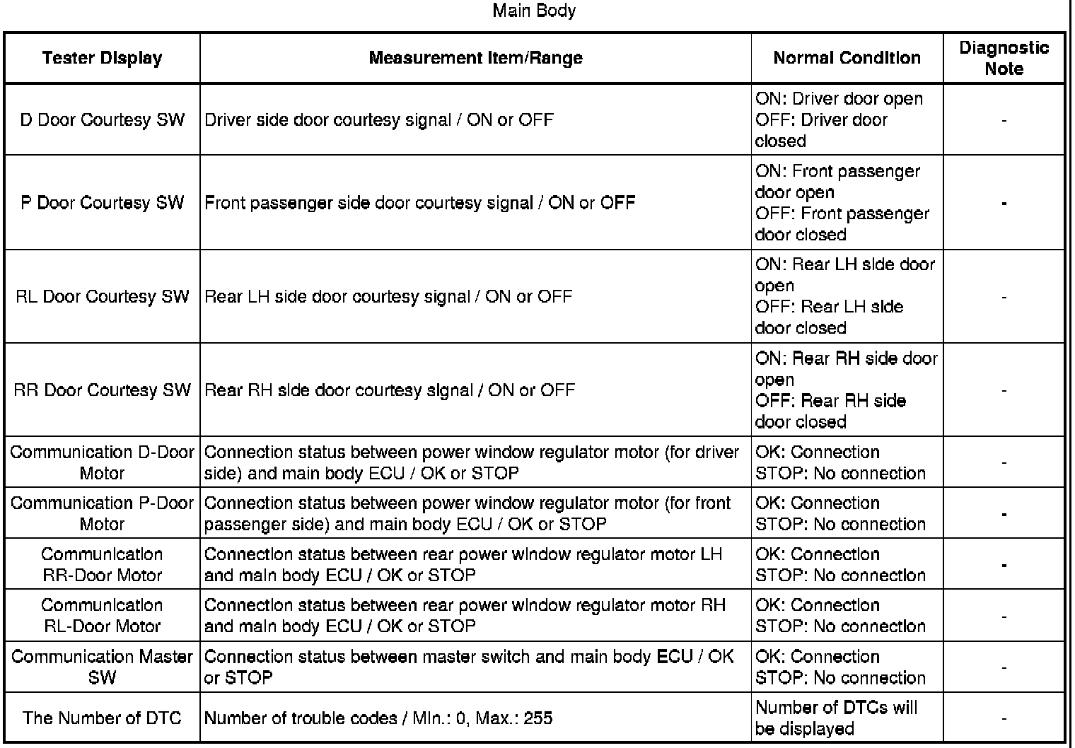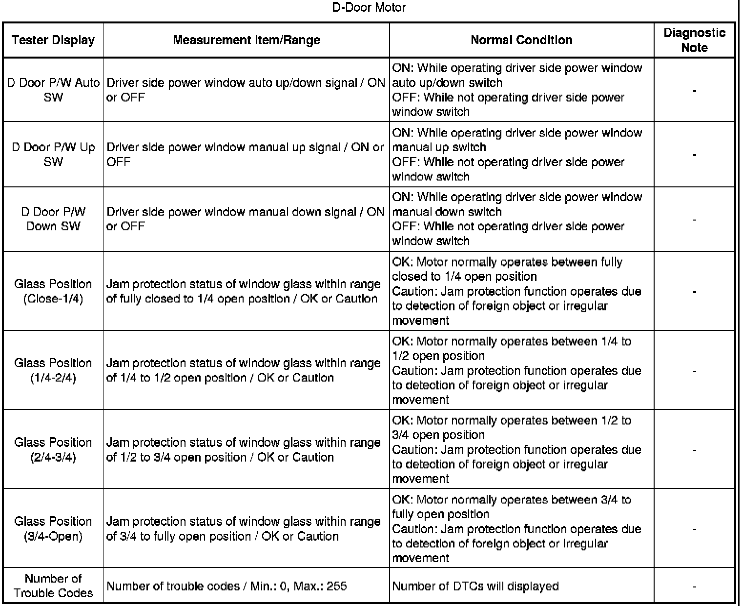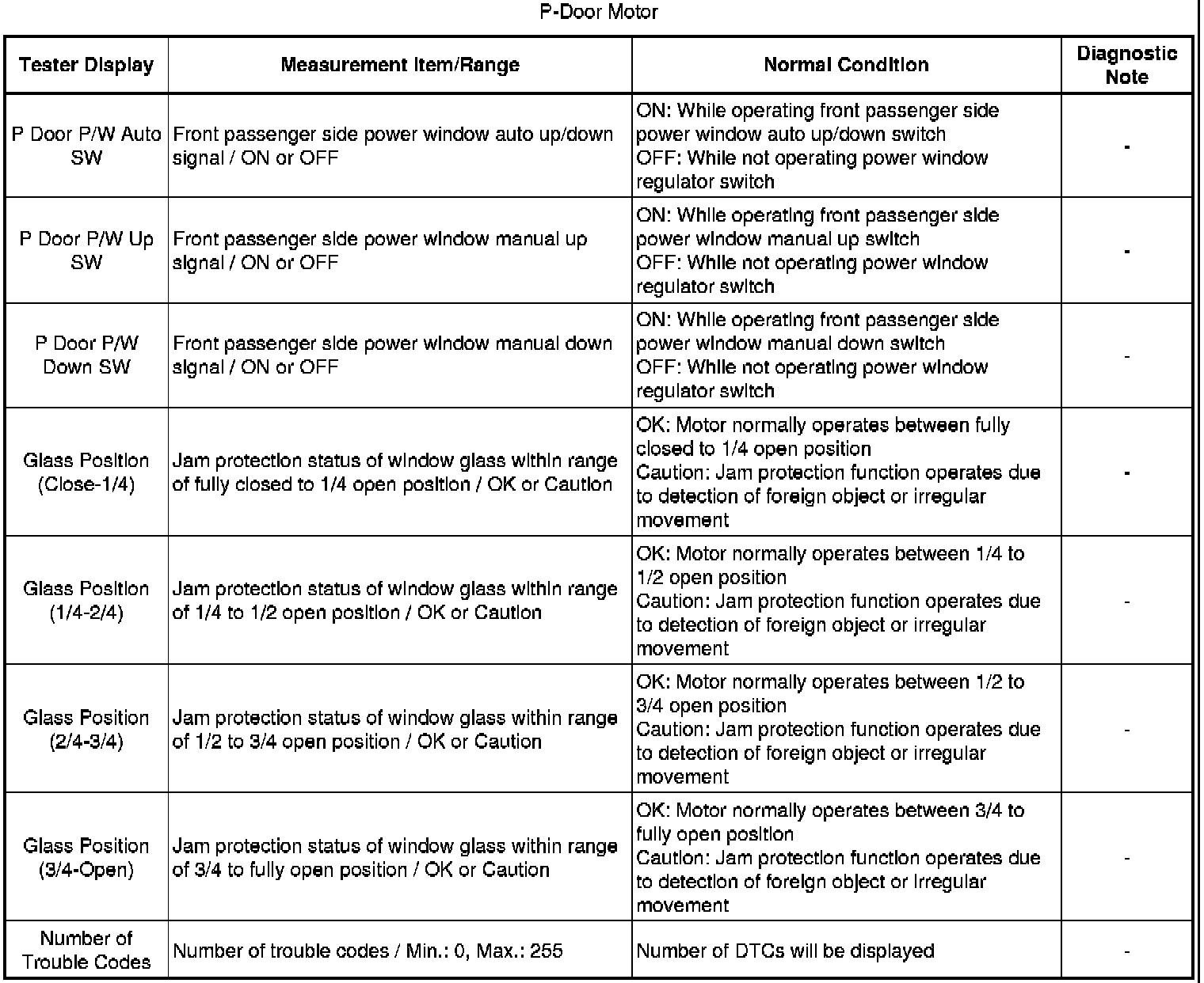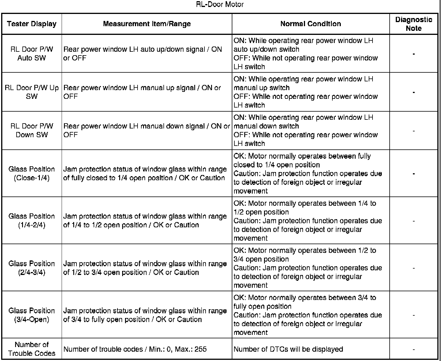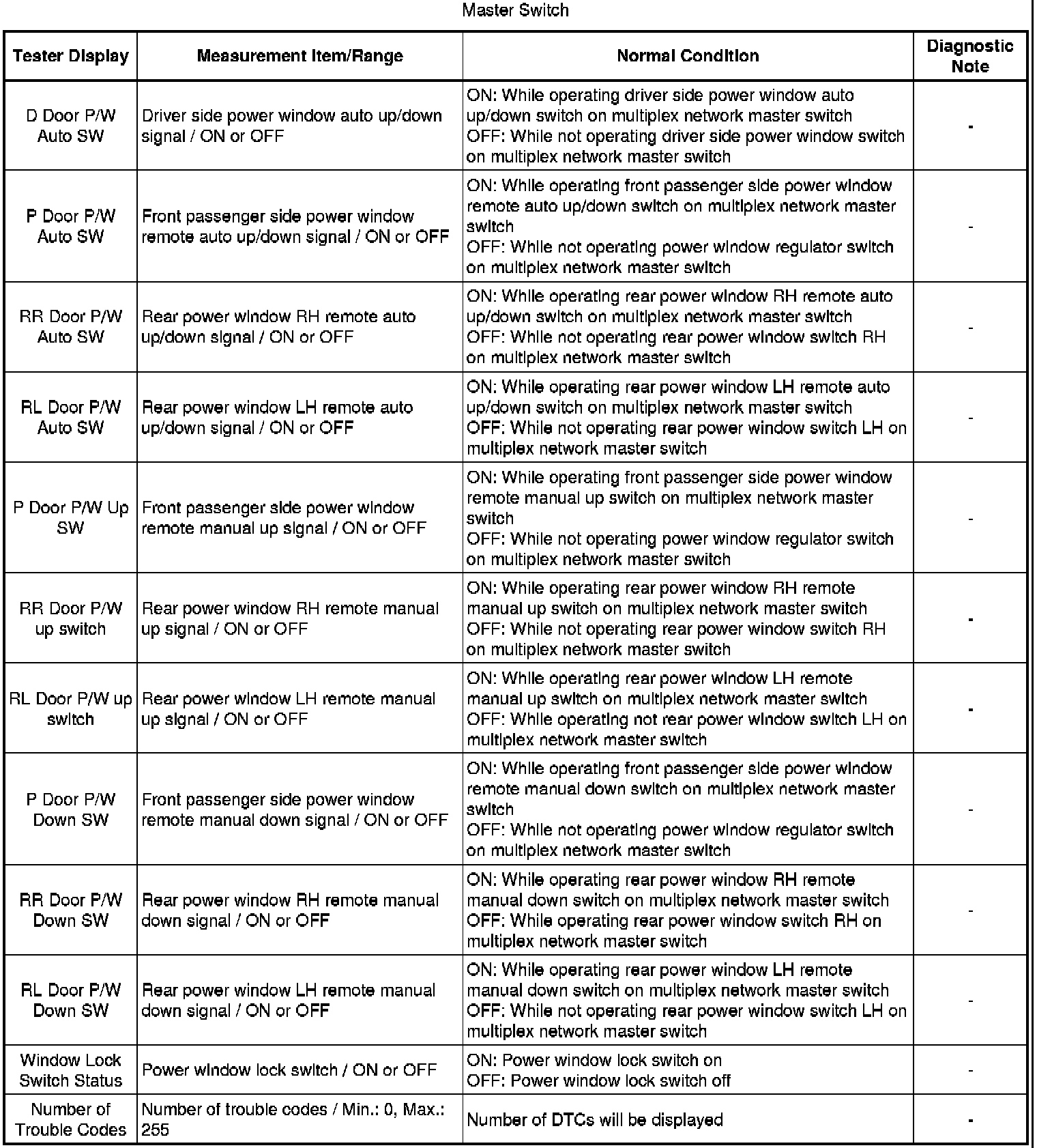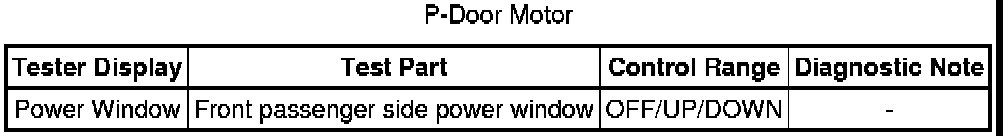 WINDOW / GLASS: POWER WINDOW CONTROL SYSTEM: DATA LIST / ACTIVE TEST