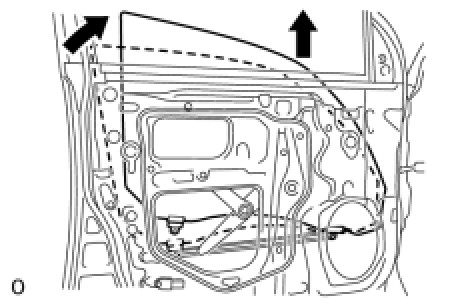 (g) Remove the door glass in the direction indicated by the arrows in the illustration.