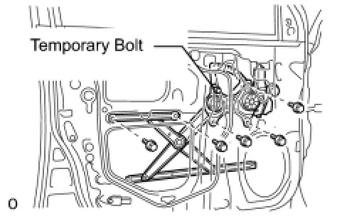 (d) Remove the temporary bolt from the front door window regulator sub-assembly.