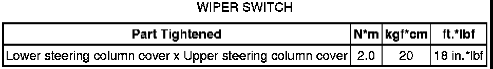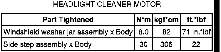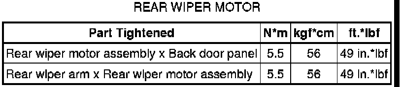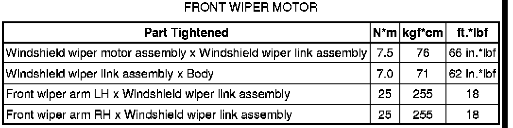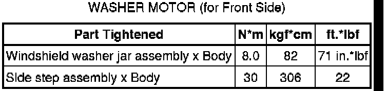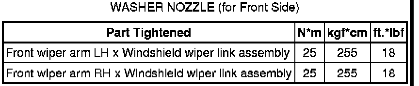 SPECIFICATIONS: WIPER / WASHER: TORQUE SPECIFICATIONS