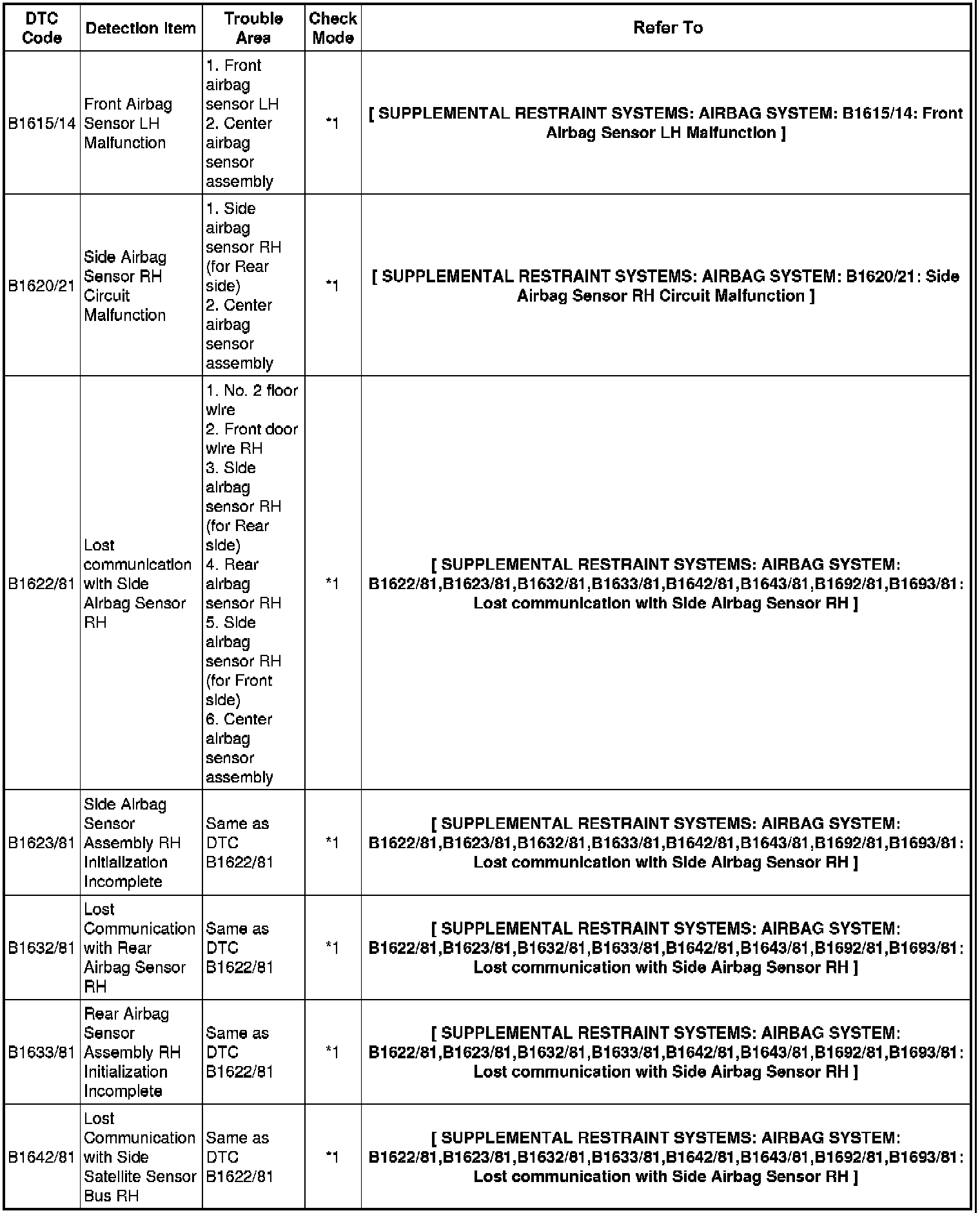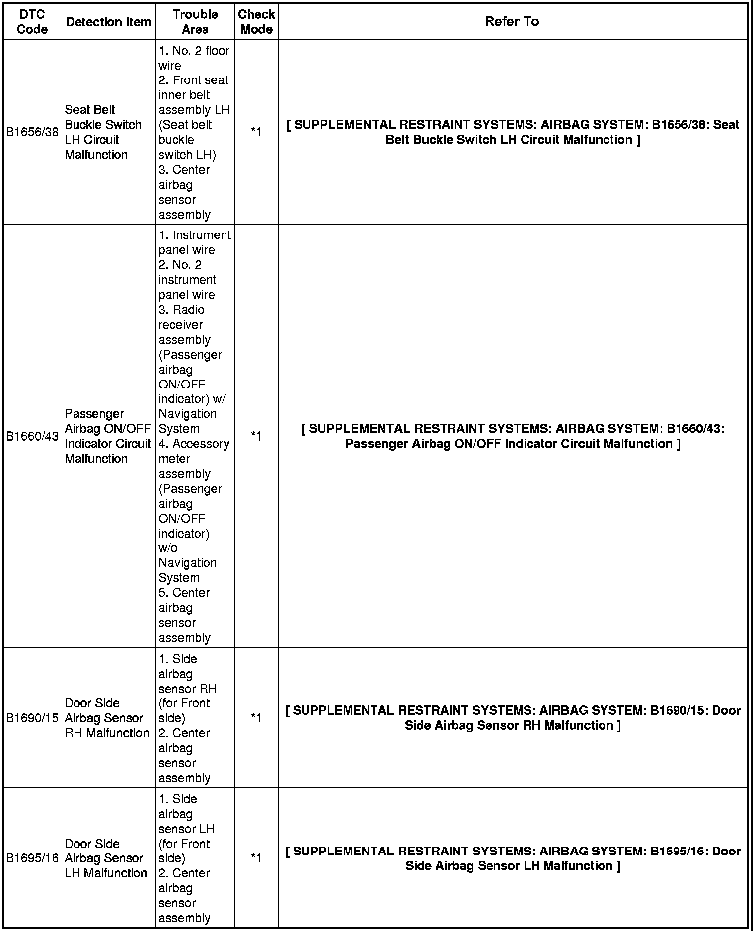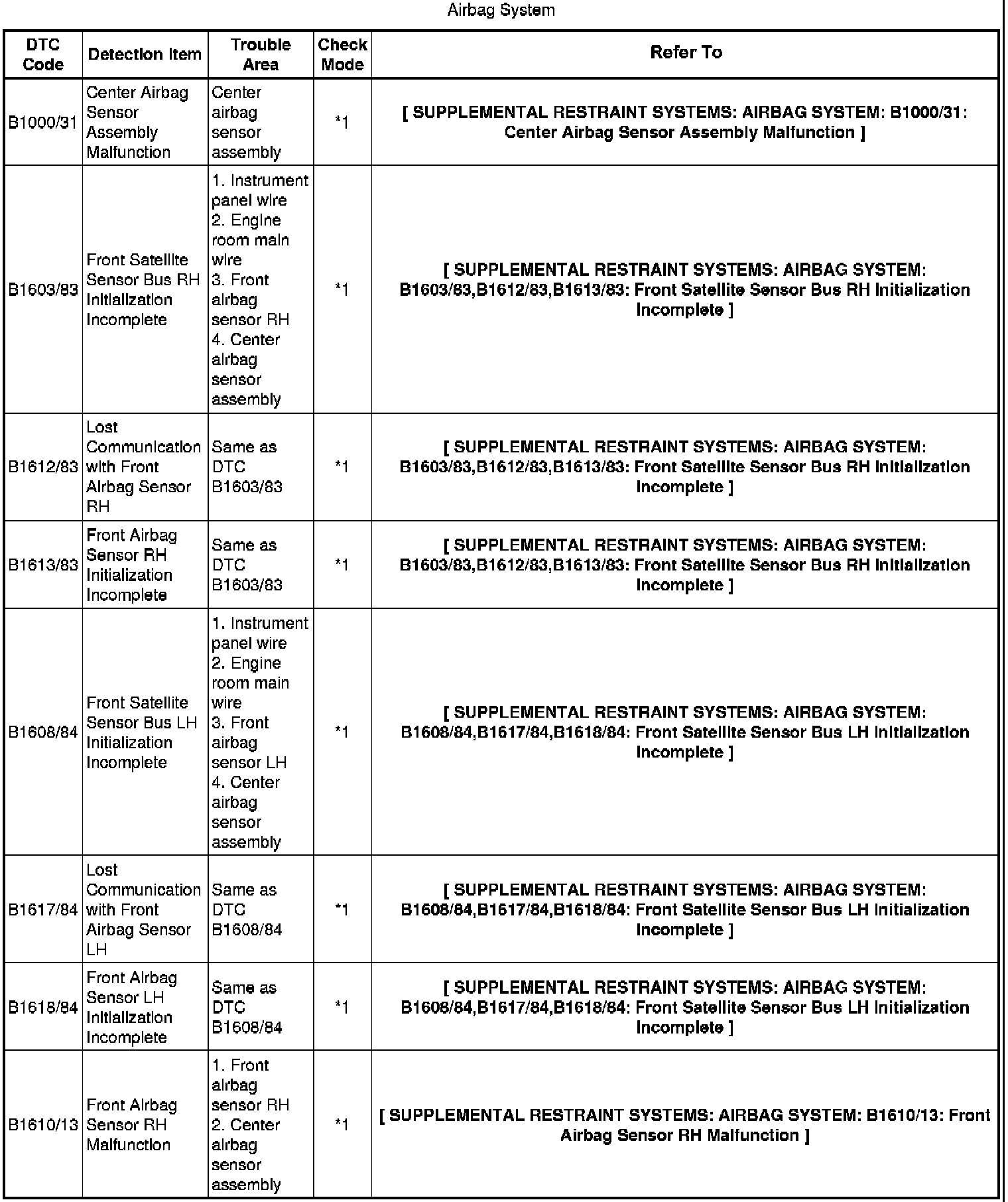 * If a code is not listed on the display chart, the center airbag sensor assembly may have failed.