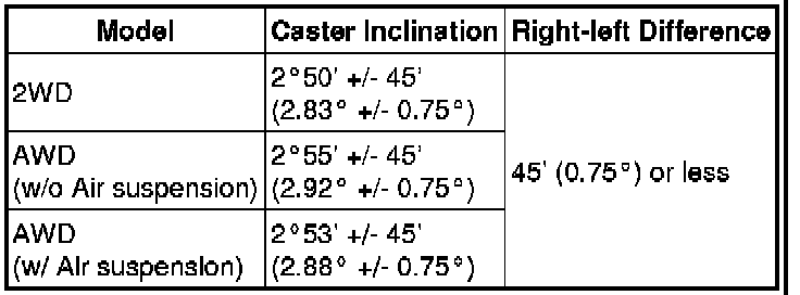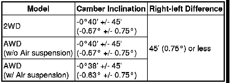 (l) The body and suspension may be damaged if the camber is not correctly adjusted according to the above table.